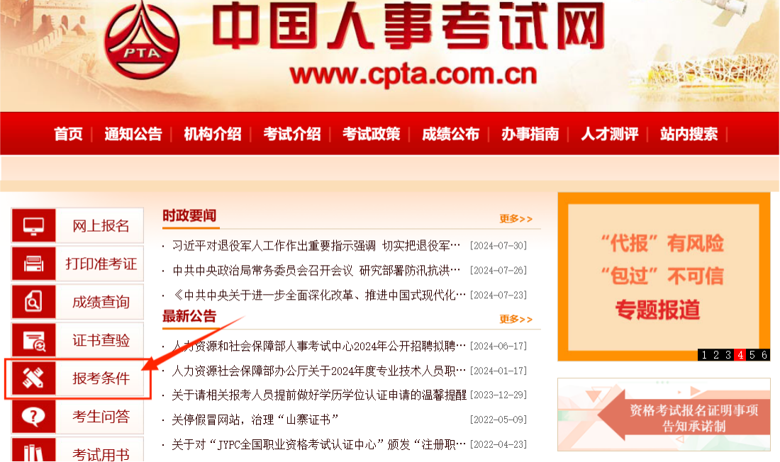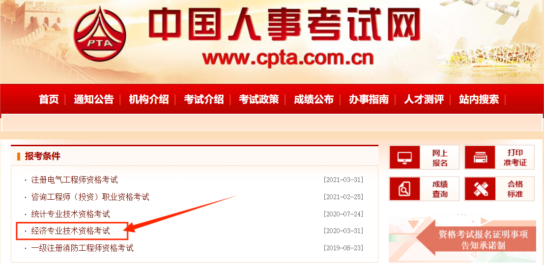 全国专业技术人员资格考试报名服务平台http://zg.cpta.com.cn/examfront
